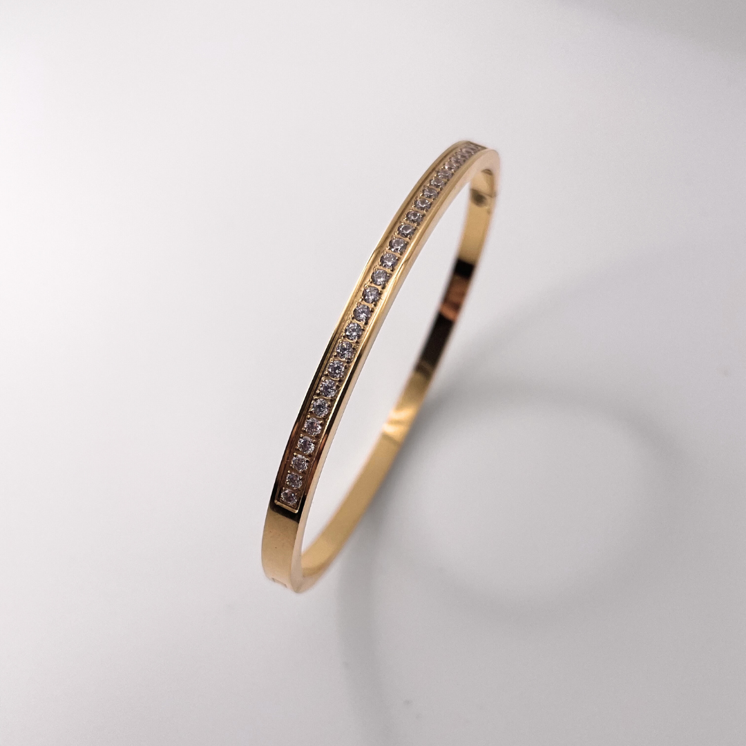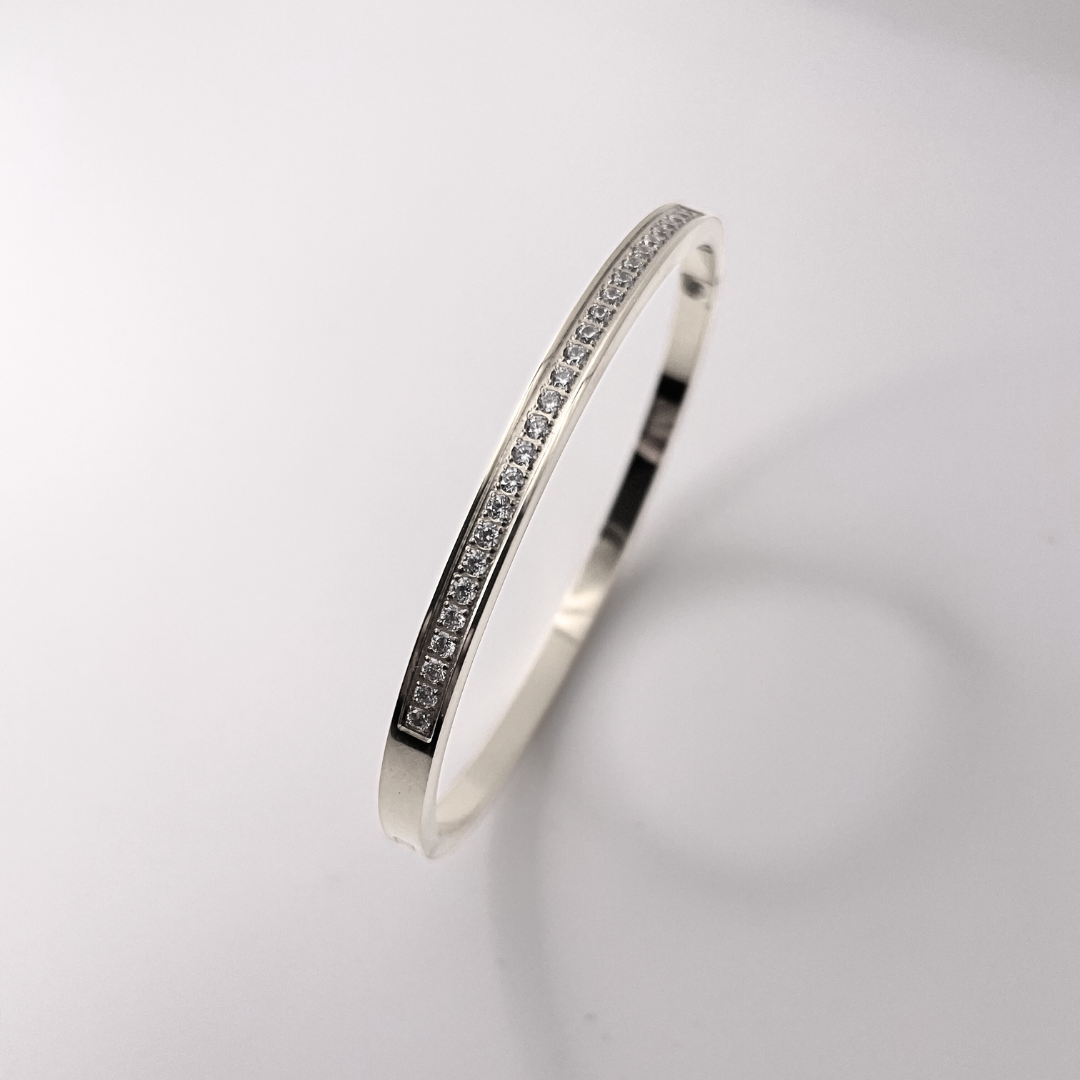 Jonc en acier inoxydable et zircons avec fermoir.